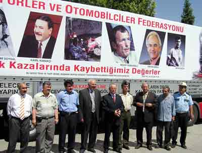 81 il ve birçok ilçeye gidecek olan gezici sergi TIR’ı hakkında bilgi veren TŞOF Basın Yayın Sorumlusu Hasan Kaplan, 2004 yılının Trafik Yılı ilan edildiğini belirterek, "Trafiğin önemini bildiğimiz için böyle bir çalışma yaptık. Burada trafikte ölen insanları aşağı yukarı hepimiz tanıyoruz. Biz bu kazalarda yaşamını kaybedenlerin fotoğraflarını biraraya toplayarak, daha çarpıcı olmasını istedik. Trafik, ülkemizin yakıcı ve can alıcı konularından biri. Türkiye’de her 10 yılda meydana gelen trafik kazalarında bir Kırşehir, Çankırı yok oluyor. Yani 50-60 bin insanımız yok oluyor. Bu sadece kaza anında kayıtlara geçen bölümü. Bunun dışında bir de hastanede ölenler var. Trafik kazaları olmaması için sürücülerimizi bilinçlendirmeliyiz ve bunun için çalışıyoruz" dedi.