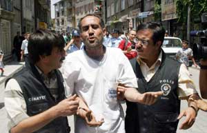 Edinilen bilgiye göre, trafik polisleri tarafından plakasız mobiletine el konulan Muhsin Aydınlı (39), merkez Meram İlçesi Gazi Alemşah Mahallesi Sırçalı Medrese Caddesi Türktaş Apartmanı'ndaki evine geldi. Aynı apartmanın girişindeki iş yerinde eşi Hatice Aydınlı (39) ile birlikte bisiklet ve motosiklet tamirciliği yapan Muhsin Aydınlı, çocuklarını da yanına alarak apartmanın çatısına çıkarak intihar girişiminde bulundu. Trafiğe kapatılan caddeye çatıdaki kiremitleri atan Muhsin Aydınlı'yı intihar girişiminden vazgeçirmek için mobileti getirildi.