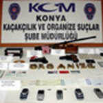 Konya Emniyet Müdürlüğü’nün organize suç örgütlerine yönelik çalışmaları kapsamında, aralarında Kırıkkale Emniyet Müdür Yardımcısı ve 1 astsubayın da bulunduğu 12 kişi yakalandı. Konya Emniyet Müdürlüğü’nden yapılan açıklamaya göre, bir süre önce faaliyetleri belirlenen çıkar amaçlı suç örgütüyle ilgili çalışma başlatan Kaçakçılık ve Organize Suçlar Şube Müdürlüğü ile İstihbarat Şube Müdürlüğü ekipleri, soruşturmaların tamamlanması ve delillerin toplanmasının ardından, aynı anda düzenlenen bir operasyonla, farklı illerden 12 kişiyi yakalayarak gözaltına aldı. Yakalanan sanıkların bulunduğu yerlerde yapılan aramalarda, birer tabanca, av tüfeği, gaz tabancası, Urartu dönemine ait vazo, 50 milyar liralık senet, 13 milyar liralık çek, 9 milyar liralık ve 16 bin dolarlık bono, 5 cep telefonu sim kartı, 2 cep telefonu, sahte pasaport, sahte sürücü belgesi ile çok sayıda doküman ele geçirildi. Çıkar amaçlı suç örgütünün lideri durumundaki Abdullah Ü’nün, adam öldürmeye teşebbüs suçundan 10 ay hapis cezası ve ruhsatsız tabanca bulundurma suçundan arandığı bildirildi.