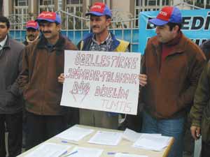 Konuşmaların ardından TÜMTİS’e üye şoför ve personel, belediye otobüslerinin özelleştirilmemesi için vatandaşlardan imza istedi.