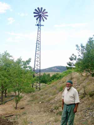 Belde dışındaki bahçesinde elektrik ve su imkanı olmadığını belirten, ancak rüzgarın karşısına pervane dikerek, elektrik enerjisi elde ettiğini vurgulayan ve bu imkanı meyve bahçesinde yeraltından su çıkararak değerlendirdiğini kaydeden Topaklı, "Sondajla çıkardığımız suyu, yine rüzgar değirmeni sayesinde ürettiğim elektrikle kiraz ve çilek bahçesini sulamada kullanıyorum. Bu uygulamayı hayata geçirdikten sonra elektrik ve mazot masrafım sona erdi" dedi.