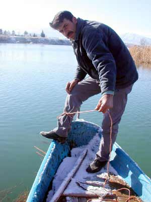 Beyşehirli balıkçı Rahim Çolak, soğuk kış günlerine rağmen ekmek parası için avlanmaya devam etmek zorunda olduklarını söyledi.