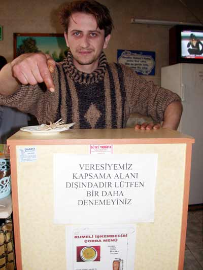 Beyşehir merkezinde çorba salonu işleten Halil Sezen, müşterilerinin hesabı ödemeden gitmeyi alışkanlık edinmesi üzerine, "Veresiyemiz kapsama alanı dışındadır, lütfen bir daha denemeyiniz" şeklinde döviz yazarak sitemde bulundu.