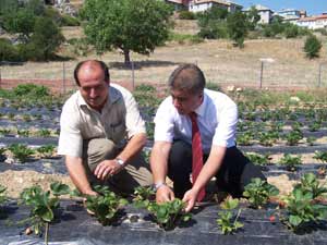 Tarım İlçe Müdürü Nurettin Karşıyaka da, Üzümlü'de oluşturulan örnek çilek bahçesi konusunda bilgi vererek, "Bu bahçede, yaklaşık 6 bin çilek fidesini toprakla buluşturduk. Damlama sulama yöntemi kuruldu ve tabana naylon serilerek, çileğin ve fidelerin toprağa değerek çürüme riski ortadan kaldırıldı. Böylece ekonomik kayıp, en aza indirildi. Önümüzdeki yıl bu bahçeden 2 tona yakın bir çileğin yetişmesini bekliyoruz. Sonbahar turfandası olarak da nitelendirilebilecek olan Ağustos ayında yetiştirilen organik çileğin, hem kalitesi ile hem de fiyatıyla üreticilere önemli ölçüde kazanç sunacak" şeklinde konuştu.