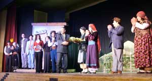 Kılınç, oyun sonunda tiyatroculara çiçek verdi.