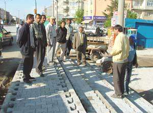 Kaldırım çalışmalarını yerinde inceleyen Başkan Yıldız, "Kuluda stabilize yollardan kurtulmaya çalışıyoruz. Bütün yollarımıza imkanlar ölçüsünde asfalt dökeceğiz. Gerektiğinde altyapı çalışması yapabileceğimiz şekilde kaldırımları kilitli taşlarla döşüyoruz. Sokak ve caddelerdeki kaldırımların yüzde 90ına kilitli taş döşeyeceğiz" dedi.