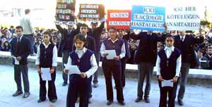 Konuşmanın ardından, konu ile ilgili düzenlenen şiir ve kompozisyon yarışmasında 1. olan Fatma Çakıra ödülü takdim edildi. Okul öğrencileri ise, hazırladıkları dövizlerle zararlı alışkanlıkları önleyici mesajlar verdiler.