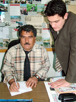 Nevşehir Sosyal Yardımlaşma ve Dayanışma Vakfı Müdürlüğü hizmet binasında çalışan 48 yaşındaki işçi Hazım Güngör, Vali Yardımcısı Adnan Türkdamar ve büro çalışanlarının desteği ile okuma-yazma öğrendi.