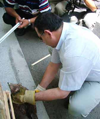 Nevşehir Lale Sanayi Sitesi 6. Blok'ta sabah işyerine gelen Ahmet Gönenç isimli sanayici, işyerinin önünde iki şahin buldu. Yorgunluktan bitkin gözüken şahinleri bir kafese kapatan sanayici Ahmet Gönenç, bu durumu Nevşehir Çevre ve Orman Müdürlüğü yetkililerine bildirdi. Nevşehir Çevre ve Orman Müdürlüğü Doğa Koruma ve Milli Park Mühendisi Erdem Yavuz, kafes içerisine konulan ve saldırganlıkları ile bilinen şahinleri bir araçla Nevşehir Tarım İl Müdürlüğü'ne kadar götürdü. Burada veteriner Hekim Osman Irklı tarafından sağlık kontrolünden geçirilen iki şahinin oldukça sağlıklı olmalarına karşın, sıcağında etkisi ile yorgun düştükleri belirlendi. Yavuz tarafından iki gün süre ile beslenecek yavru şahinler, daha sonra doğaya salıverilecek.