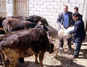 Ürettikleri patatesin ellerinde kaldığını ve zarar ettiklerini ifade eden üreticiler, komisyon üyelerinin bazı üreticilerinin sorunlarını dinlediği sırada, ellerinde kalan patatesleri ineklerin önüne atarak yem yaptı.