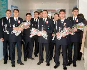 Polis adayı öğrenciler, Türk Polis Teşkilatının kuruluşunun 160. yıl dönümü etkinlikleri kapsamında Niğde Devlet Hastanesinde tedavi gören hastaları ziyaret etti.