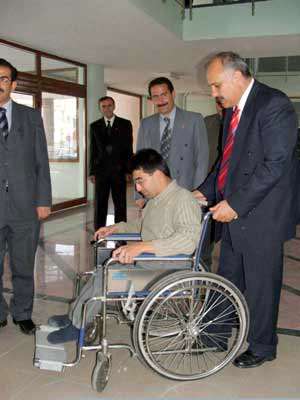Niğdede özürlü bir gencin tekerlekli sandalyesi çalındı. Özürlü gence, Vali Gündüz Beder tarafından yeni tekerlekli sandalye verildi.