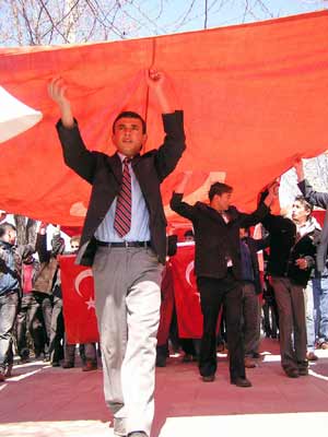 Mersindeki Nevruz gösterilerinde Türk Bayrağına yapılan saldırı nedeniyle Alperenler Ocağı Sivas Şubesi üyeleri, "Bayrağımıza Karşı Yapılan Menfur Saldırıyı Telin Mitingi" yaptı.