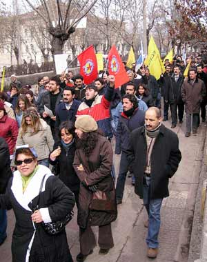 Hükümet Meydanındaki Selçuk Çay Bahçesi önünde toplanan 300 kadar KESK, DİSK, Türk-İş, Kamu-Sen ve çeşitli sivil toplum örgütleri ile siyasi parti üyelerinin bulunduğu Emek Platformu üyeleri adına bir açıklama yapan Türk-İş 5. Bölge Başkanı Ümit Özşeker, hükümetin çıkardığı yasalarla sağlık konusunu bitirdiğini, SSK hastanelerinin özelleştirileceğini savundu. Grup açıklamanın ardından yürüyerek, SSK Hastanesi önüne geldi. Kaldırımdaki vatandaşlara, okunan açıklamayı vererek, kendilerine destek isteyen sendikacılar, yol boyunca çeşitli slogan attılar.