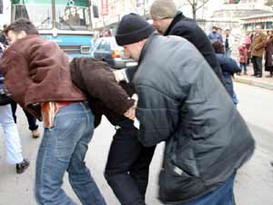 Ezilen Sosyalist Platformu üyesi 4'ü bayan 6 kişilik bir grup, Sivas’ta Atatürk Caddesi üzerindeki PTT Başmüdürlüğü binası önünde izinsiz basın açıklaması yapmak isteyince, gözaltına alındı