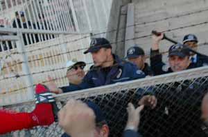Daha sonra soyunma odasına giden Sivassporlu futbolculara, Mersin İdmanyurdu taraftarları küfür ederek yabancı maddeler attı. Taraftarlara tepki gösteren Sivassporlu futbolcular, konuk ekip taraftarlarının bulunduğu tribünün önündeki tel örgülere geldi. Polis, olayların büyümesini önlemek için Sivassporlu futbolculara müdahale etti. Olaylar sonrası bazı Sivassporlu futbolcular ve yöneticiler, polislerin kendilerini jopladığını ve darp ettiğini ileri sürdü.