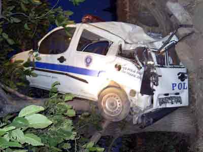Olay, Kemalpaşa Mahallesi'nde meydana geldi. Suşehri Emniyet Müdürlüğü'nde görevli polis memuru Ömer Yüce ve ekip arkadaşı Özgür İşnel, gece saat 03.00'te devriye görevi yaptığı sırada, aşağı yoldan giderken, sürücü Ömer Yüce, aracın direksiyon hakimiyetini kaybederek, yol kenarındaki bariyerlere çarptı. Ardından bariyerlerden kurtulan araç, kaldırım kenarındaki bir ağaca çarparak durabildi. Meydana gelen kazada şans eseri polis memurları yara almazken, araçta maddi hasar meydana geldi.
