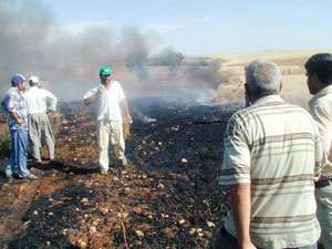 Yangına müdahale etmek isteyen itfaiye ekipleri ve vatandaşlar yangının diğer arazilere sıçramaması için büyük uğraş verdi. Alevlerin içine giren vatandaşlar, ellerindeki ağaç dallarıyla yangını söndürmeye çalıştı. Yaklaşık 1 saatte kontrol altına alınan yangında, Ömer Yıldırıma ait 50 dönüm, Mehmet Özer e ait 20 dönüm buğday arazisi tamamen kül oldu. Zamanında yapılan müdahale sayesinde çevrede bulunan binlerce dönüm buğday arazisi son anda kurtarıldı.