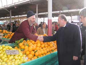 Pazarcı esnafı ile tek tek görüşen Başkan Özarslan, süt ve süt ürünü satan esnaflara hijyen sağlamak amacıyla bundan böyle camekan kullanmaları gerektiğini söyledi.