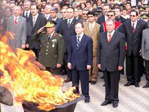 Düzenlenen anma törenine, Vali Erhan Tanju, Garnizon Komutanı Tuğgeneral Hüseyin Çetinkaya, Belediye Başkanı İsmet Özarslan, daire müdürleri, askeri personel, öğrenciler ve vatandaşlar katıldı. Atatürk Anıtı’nın önüne çelenklerin konulmasından sonra saat 09.05’te itfaiye, polis ve sivil savunma araçlarının çaldığı siren sesleri eşliğinde Atatürk, ölümünün 66 yılında anıldı.
