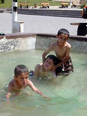Çevredekilerin bakışlarına aldırmadan soyunarak havuza giren küçük çocuklar, yakalanabilecekleri hastalıkları hiçe sayarak serin suların keyfini çıkarıyor.