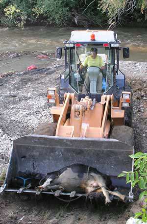 Amasyada dereye düşerek yaralanan ineği, belediyeye ait kepçe kurtardı. Göllü Bağları mevkiinde otlarken Tersakan çayına düşen bir inek, mahalle sakinlerinin uzun uğraşlarına rağmen kurtarılamadı.