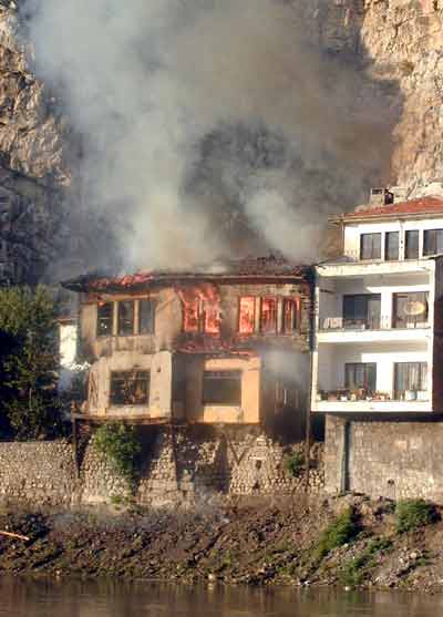 Edinilen bilgiye göre, bugün saat 14.30’da Hatuniye Mahallesi Yalıboyu evlerinde boş olan tarihi bir binada belirlenemeyen bir nedenle yangın çıktı. Yangına müdahale eden Amasya ve çevre ilçelerden gelen itfaiye ekipleri, binaya çökme tehlikesi sebebiyle fazla yaklaşamazken, alevler binanın tamamını sardı. Yangında tarihi bina tamamen yanarak kül olurken, binanın yan tarafında bulunan betonarme binanın da tavanı yandı. Yangın uzun uğraşlar sonrasında kontrol altına alınırken, çıkış sebebi araştırılıyor.