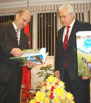 Vali Kırlı, TOKİ Başkanı Bayraktara Artvini tanıtan bir kitap hediye etti.