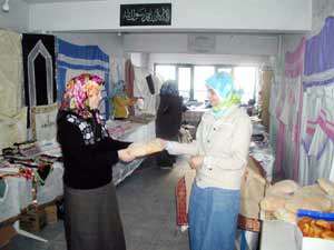 Kurs ve Okul Talebeleri Merkez Orta Öğrenim Kız Yurdu Derneği üyelerinden Hüsniye Güner ve Emine Kaymak, "Ev hanımlarının yapmış oldukları el işlerinin yanı sıra pişirdikleri ev ekmeği ile hamur işlerini burada paraya çevirmeye çalışıyoruz. Hem ziyaretçiler hem de derneğimiz kazanıyor. Amacımız yurtta kalan ihtiyaçlı öğrencilerimizin ihtiyaçlarını gidermek. Katılım ve ilgi çok iyi" dedi.