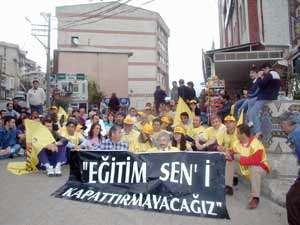 Eğitim Sen’in kapatılma kararına, Artvin’de sendika üyeleri oturma eylemi yaparak tepki gösterdi. Artvin’de saat 17.30’da Hükümet Meydanı’nda toplanan Eğitim Sen üyeleri, hava kararıncaya kadar oturma eylemi yaptı.