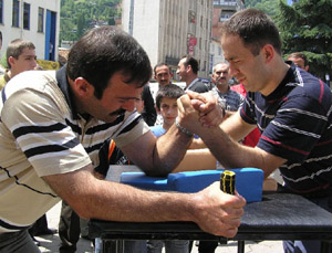 Artvin'de düzenlenen 25. Kafkasör Kültür Turizm ve Sanat Festivali etkinliklerinde, bilek güreşi müsabakaları gerçekleştirildi.