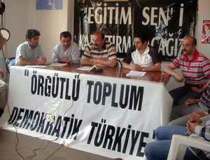 Eğitim-Sen Artvin Şubesi Başkanı Seyfettin Altıkulaç, makamında astığı pankartların arkasında basın açıklaması yaptı. Başkan Altıkulaç, bugün makamında yaptığı basın açıklamasında, Eğitim Senin kapatılma kararını eleştirdi. Başkan Altıkulaç şöyle dedi: