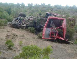 Artvin'in Çimenli Köyü'nde ot yüklü bir kamyonetin uçuruma yuvarlanması sonucu meydana gelen kazada, 1 kişi öldü, 5 kişi yaralandı. Çimenli Köyü'nde dün saat 17.30 sıralarında meydana gelen kazada, meradan eve gelmeye çalışan Mevlüt Gür (67) yönetimindeki 53 KA 144 plakalı ot yüklü kamyonet, virajı alamayarak 80 metrelik uçuruma yuvarlandı.