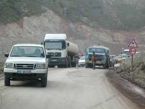 Baraj çalışmaları nedeniyle her gün yarım saat ve 45er dakikalık kesintiler yapılarak 15er dakika geçiş izni verilen Borçka-Artvin karayolunda sürücülerin ve yolcuların çilesi bitmiyor.
