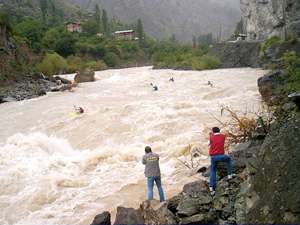 İspirde 25 Mayısta başlayan 1. Uluslararası Çoruh Kano Şampiyonasında, sporcular Yusufelindeki zorlu etaplarda mücadele etmeye başladı.