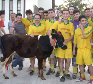 Bartın Merkez Kızılelma Köyü'nde Kızılelma Spor Kulübü tarafından bu yıl birincisi düzenlenen Kızılelme Şemsi Denizer Futbol Turnuvası'nda şampiyon olan takıma boğa ödülü verildi.