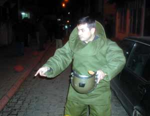 Olay yeri emniyet birimleri tarafından güvenlik çemberi altına alınırken, cadde yaya ve araç trafiğine kapatıldı. Bomba imha uzmanı, özel hazırlanmış kıyafetleriyle şüpheli pakete fünye yerleştirdi. Kısa bir süre sonra fünye patlatılırken, yapılan araştırmada paketin içinde cam bir şişe olduğu belirlendi.