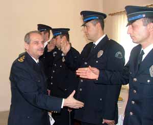 Bolu Emniyet Müdürlüğü binası önünde Bolu Emniyet Müdürü Mehmet Yazıcı tarafından karşılanan Aydıner, görevli personel ile tek tek bayramlaştı.