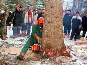 Çevre ve Orman Bakanlığı, kış tatbikatı düzenlediği Bolunun Gölcük Orman Bölgesinde, 200 yıllık köknar ağacını 10 saniyede yerle bir etti. Yaşlanan ağaçların endüstriye katılma sürecini anlatan Orman Genel Müdürü Osman Kahveci, ekonomik ve doğal ömrünü dolduran yaşlı ağaçları keserek yerlerine yeni fidan diktiklerini söyledi.