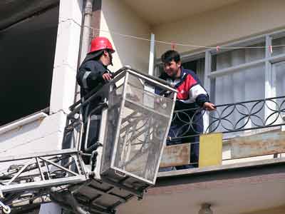 İtfaiye ekipleri, apartmanda bulunan vatandaşların dumandan zehirlenme ihtimallerine karşı merdivenle vatandaşları dairelerinden çıkartmak istedi; fakat vatandaşlar itfaiye merdivenine binmeyerek evlerini terk etmeyeceklerini söylediler.