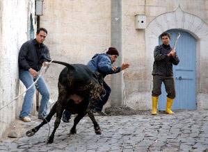 Çıkınlar Mahallesi’nde meydana gelen olayda, kızgın ve çaresiz boğa kasabın elinden kaçınca yaklaşık 1 kilometre koştu. Boğanın sahipleri hayvanı yakalayabilmek için akıl almaz yöntemlere başvurdu. İlk önce yaklaşık 10 kişi iplerle boğayı zapt edebilmek için 1 saat uğraş verdi. Boğayı yakalayamayan vatandaşlar, çareyi traktör ve kepçe getirtmekte buldu. Vatandaşlar kızgın boğayı traktörle çekti, ancak başarılı olamayınca kepçe ile boğayı sıkıştırmak istedi. Ancak bu sırada hayvanın sol bacağının kırılmasına neden oldular. Acı içinde kıvranan boğa daha sonra kepçe yardımı ile yere yatırılarak yakalandı. Bacağının biri kırık olduğu için yürümekte zorluk çeken hayvan, bu kez de bir traktörün arkasına bağlanarak, yaklaşık 5 kilometre uzaklıktaki mezbahaya götürüldü.