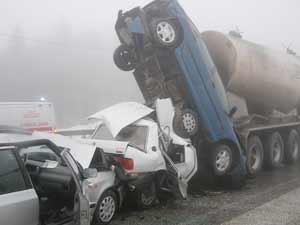 Bolu Dağı Seymenler mevkiinde yoğun sis nedeniyle meydana gelen ilk zincirleme trafik kazasında 15 araç birbirine girdi. İlk kazanın ardından kazanın 50 metre aşağısında da ikinci zincirleme trafik kazası daha meydana geldi. Bu kazada da 5 araç birbirine girdi. Toplam 20 aracın karıştığı kazada Bolu Dağı savaş alanına dönerken, olay yerine gelen ambulanslar yaralıları Bolu Devlet Hastanesi’ne kaldırdılar.