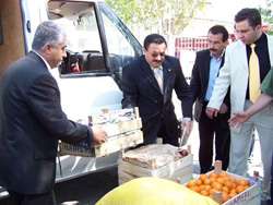 Basın açıklamasından sonra yaş sebze ve meyve ile kuru gıdadan oluşan yardımlar araçlara yüklenerek yanan köye doğru yola çıktı.