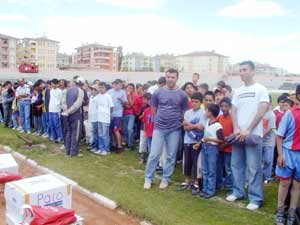 Dr. Turhan Kılıçcıoğlu Stadında düzenlenen malzeme dağıtım törenine, Belediye Başkan Yardımcısı Hüseyin Kılıç, Futbol İl Temsilcisi Engin Ayan, Amatör Spor Kulüpleri Federasyonu Başkanı Sefer Kurtaran, ASKF yöneticileri ve takımların antrenör ve sporcuları katıldı.
