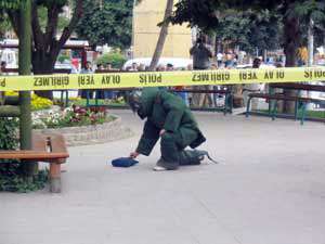 Daha sonra parka bomba imha ekibi çağırıldı. Bomba imha ekipleri, özel kıyafet giyerek şüpheli gördükleri çantayı fünyeyle patlattı. Yapılan inceleme sonucunda çantanın bir bayana ait olduğu ve içerisinde ilaç, kağıt gibi malzemelerin bulunduğu belirlendi.