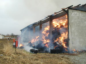 Bekçinin durumu itfaiyeye bildirmesiyle olay yerine gelen ekipler yangına müdahale ederken, yangın rüzgarın da etkisiyle büyüdü. Depoda bulunan saman balyaları, deponun çatısı ile 3 traktör römorkunun lastiklerinin kül olduğu yangını ekipler, yaklaşık 2 saat süren çalışma sonunda söndürdü.