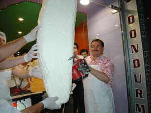 Dondurma şovu sırasında hızar makinasıyla 100 kiloluk dondurmayı kesip halka dağıtan Başkan Atlamaz, dondurmanın kesimi sırasında güç anlar yaşadı. Atlamaz, özellikle keçi sütünden yapılan ve yiyenlerde bademcik hastalığı yapmayan kestiği dondurmanın dağıtımını da kendisi üslendi. Dondurma şovun ardından Çorum Devlet Tiyatrosu'nda, sanatçı Bedirhan Gökçe'nin 'şiir dinletisi' gerçekleşti.