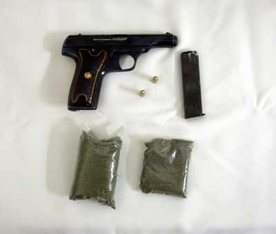 Yapılan aramalarda 80 gram esrar maddesi ile 1 adet ruhsatsız 7.65 mm çapında tabanca ile bu tabancaya ait şarjör ve 2 adet fişek ele geçirildi.