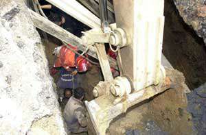 Edinilen bilgiye göre, Düzcenin Akçakoca İlçesi Ayazlı Mahallesinde Akçakoca Belediyesi tarafından yapılan kanalizasyon çalışmasında Mahmut Türker (44) isimli işçi toprak altında kaldı. 10 metre çukur içersinde boynuna kadar toprak altında kalan işçi Akçakoca Belediyesi İtfaiye ekipleri tarafından kurtarıldı. İtfaiye ekipleri toprak altında kalan işçinin boynuna kadar gömülü olması nedeniyle, kazma ve kürekle çalışarak kol altına kadar kazdı.