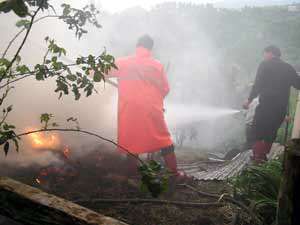 Giresunun Seldeğirmeni Mahallesinde, sabah saatlerinde yıldırım düşmesi sonucu yangın çıktı. Yangına müdahale eden itfaiyeciler ve mahalle halkı, dumandan zehirlenmemek için ayran içmek zorunda kaldı.